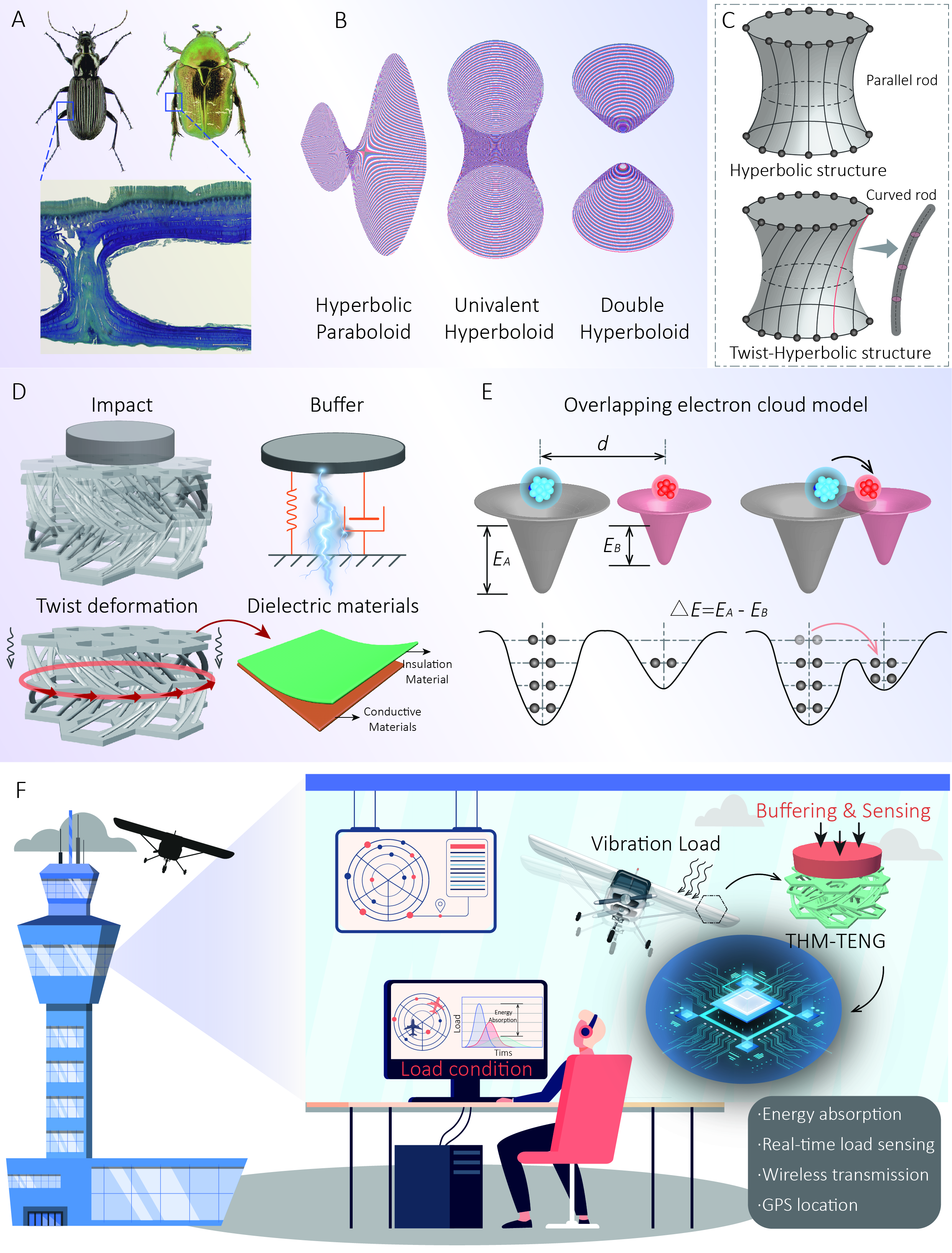 近日,机电学院齐乐华教授团队在兼顾冲击防护与自供能传感的力学超结构方面的研究取得新进展。相关成果《Bioinspired Twist-Hyperbolic Metamaterial for Impact Buffering and Self-Powered Real-Time Sensing in UAVs》发表在Science子刊《Science Advances》上。机电学院晁许江副教授为第一作者,柔电院梁飞副教授、齐乐华教授和中科院王中林教授为通讯作者。