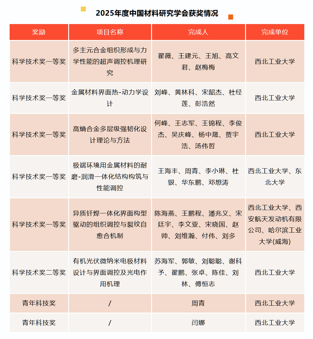 近日,2025年度中国材料研究学会科学技术奖颁奖仪式在中国材料大会上隆重举行。我校牵头获得科学技术奖6项(一等奖5项),青年科技奖2项,获奖数量均居全国首位。