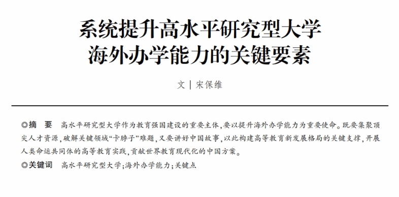 高水平研究型大学系统性提升海外办学能力,助力教育强国建设,需要构建全方位、多层次的发展路径,打造具有中国特色和世界水平的高等教育开放发展新范式。